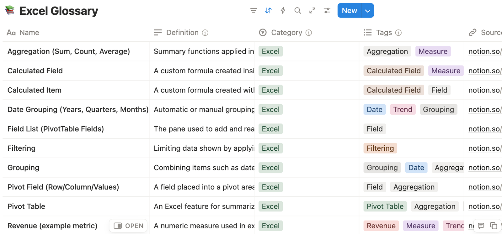 However the Notion database has a very unique aspect which regular spreadsheet tools do not have, which is the next point.